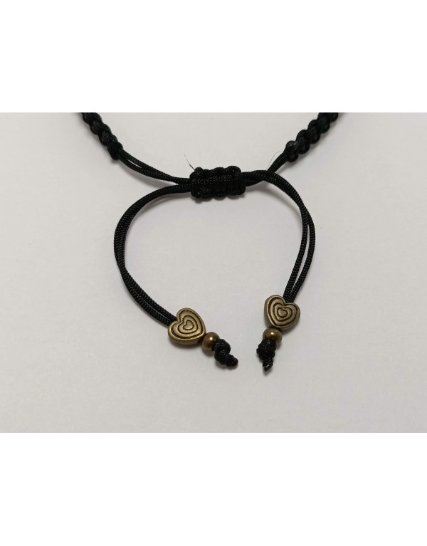 Pulsera LANKA extensible con cordón macramé de nailon de color negro detalle estrella cromado envejecida . Cierres de nudos corredizos detalle a final corazón .
